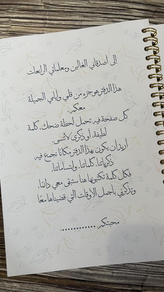 دفتر يجمع كلمات صديقاتك ومعلماتك 💌